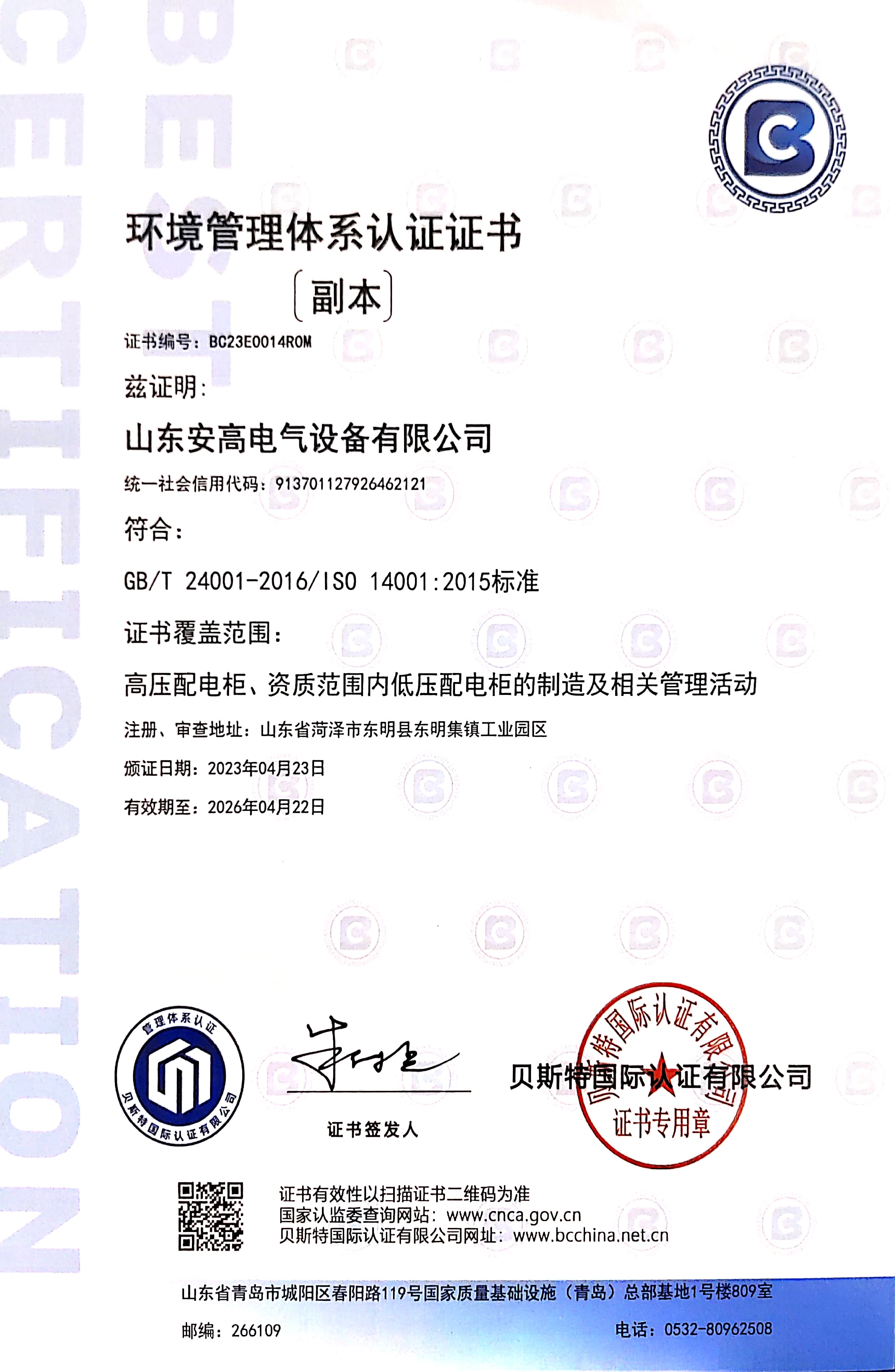 • 環(huán)境管理體系認證