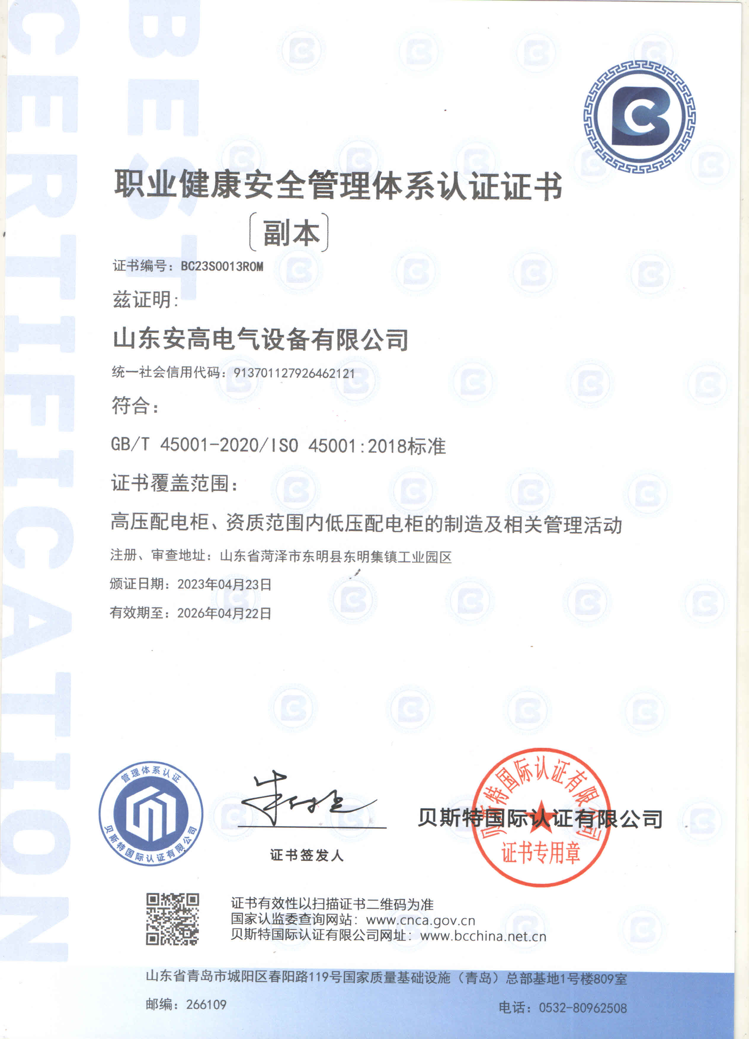 安高經(jīng)過了多年磨練,先后榮獲“守合同重信用企業(yè)”、“專精特新”中小企業(yè)、“質(zhì)量、服務、信譽AAA企業(yè)”、“國家合格評定質(zhì)量信得過產(chǎn)品”、“山東省高新技術(shù)企事業(yè)”等多項榮譽稱號。